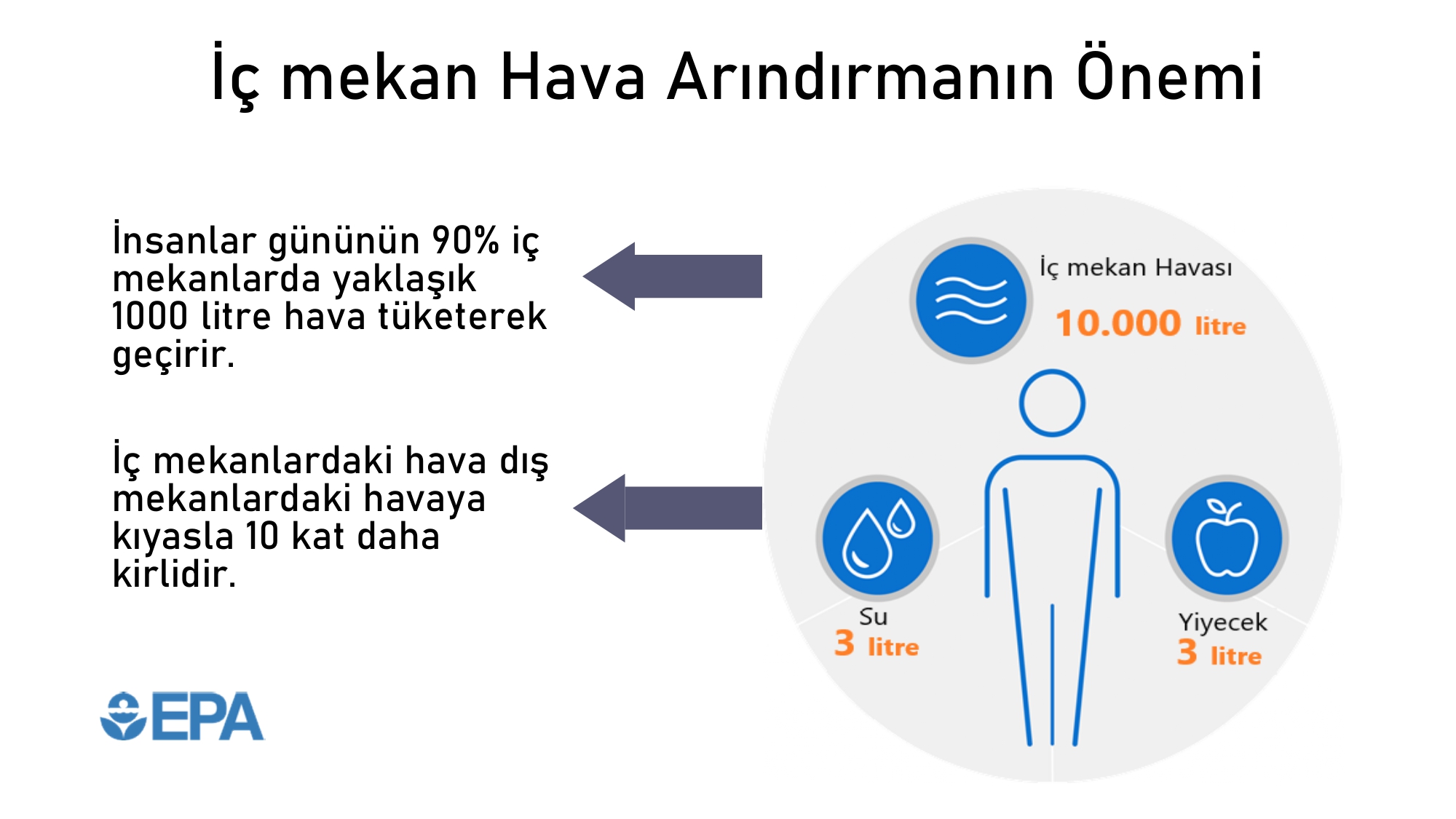 İnsanlar gününün 90% iç mekanlarda yaklaşık 1000 litre hava tüketerek geçirir.