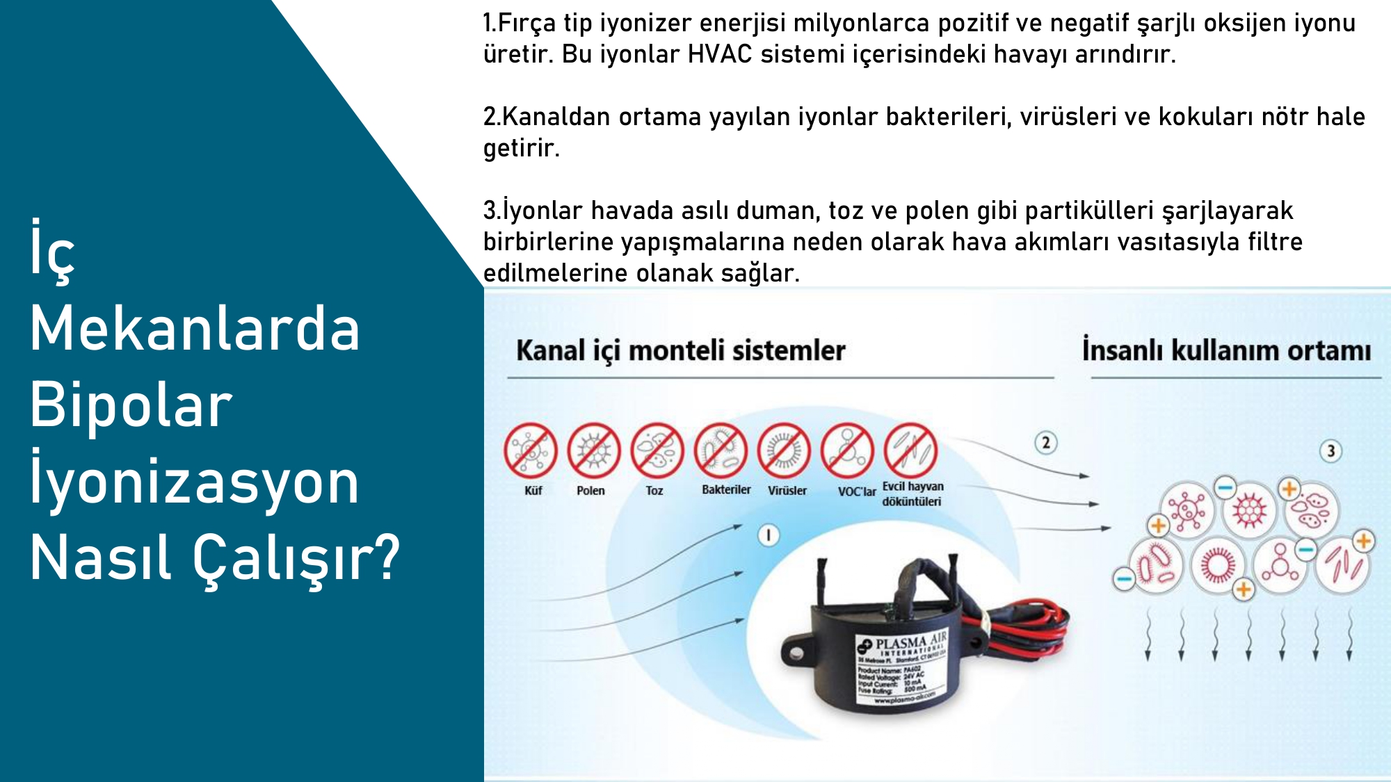 2.Kanaldan ortama yayılan iyonlar bakterileri, virüsleri ve kokuları nötr hale getirir.